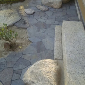 アプローチやテラスの敷石や、石を使ったお庭の造作物など、美しく仕上げます。